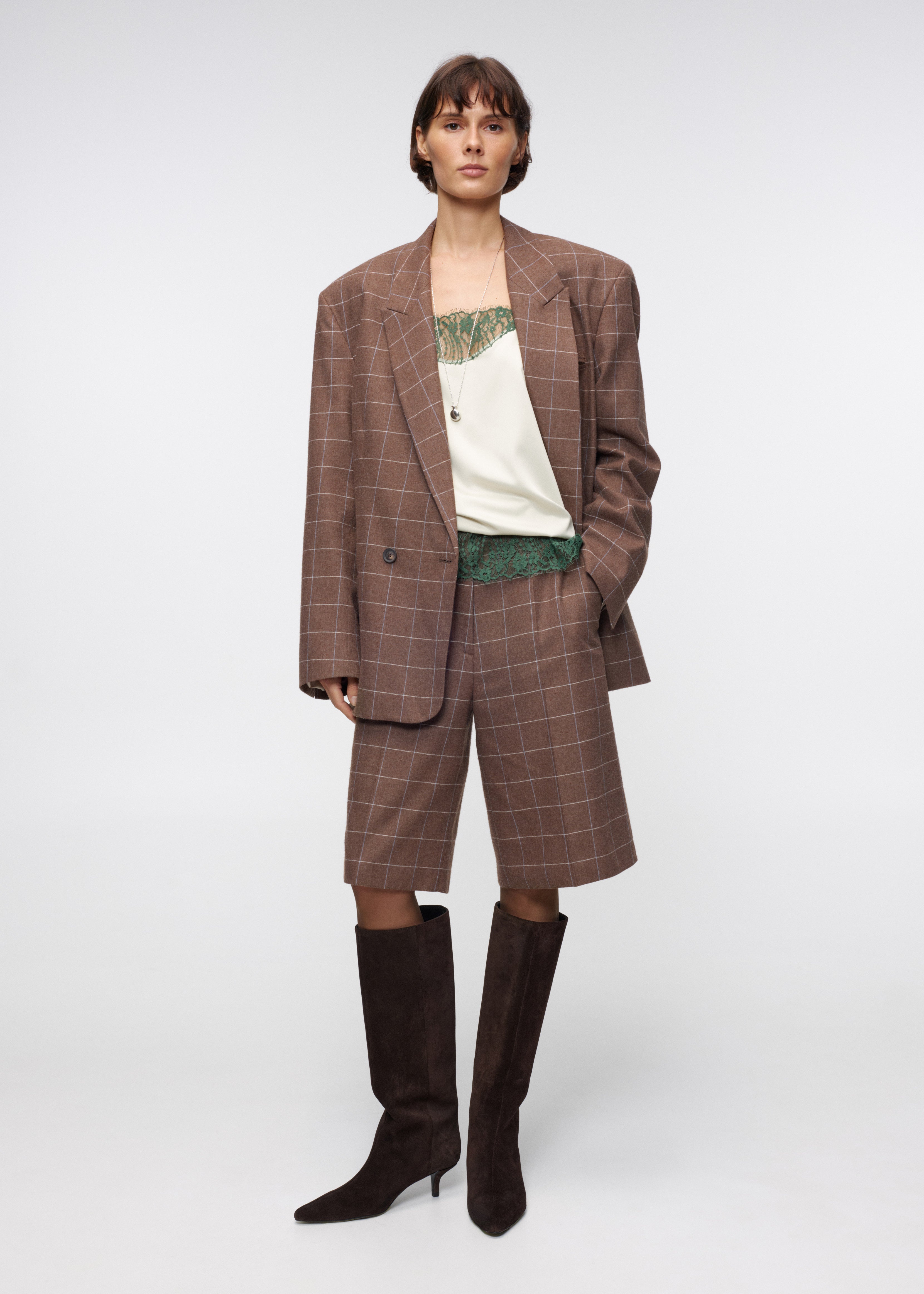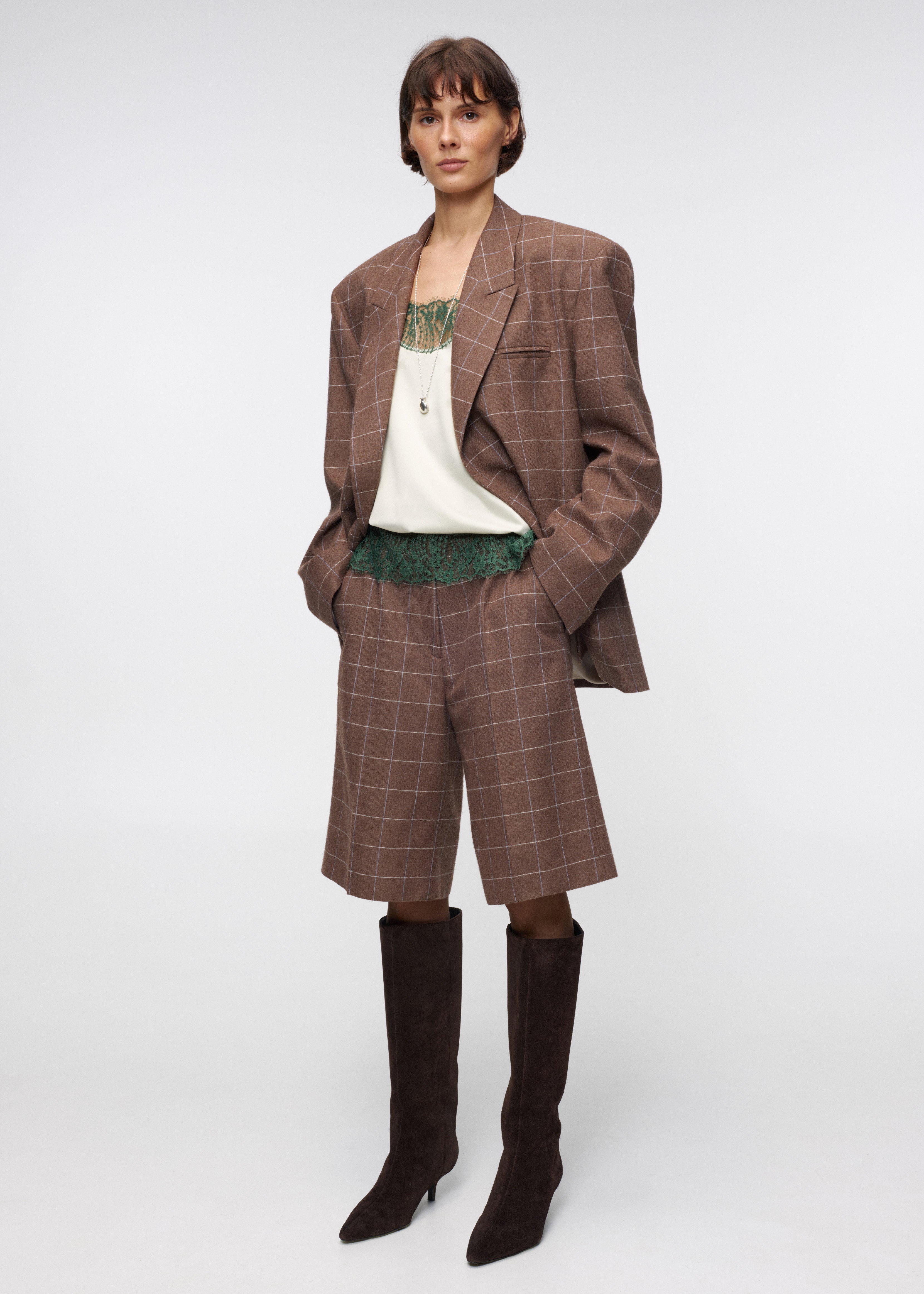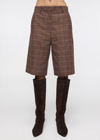 Relaxed-fit Bermuda shorts in warm brown check. Fasten with a zip and hook. Perfectly pairs with the checked jacket for a polished set.