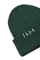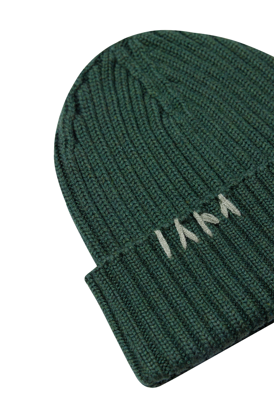В'язана зелена шапка з ніжної вовни та кашеміру. Оздоблена декоративним стібком ручної роботи. Еластична та приємна до тіла та чудово поєднується з зеленим шарфом у тон.