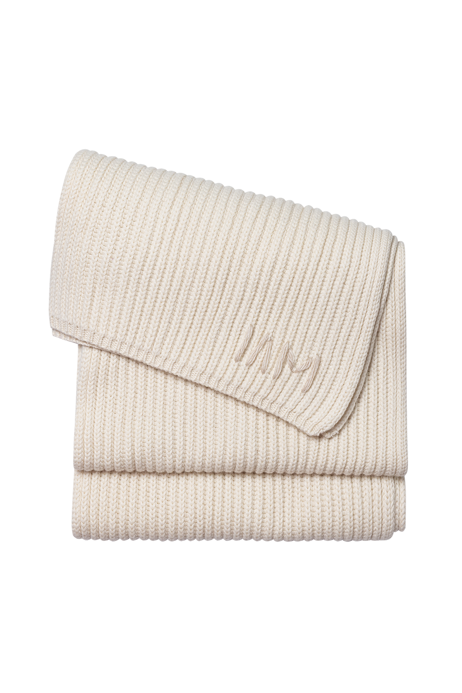 В'язаний молочний шарф з ніжної вовни та кашеміру. Оздоблений декоративним стібком ручної роботи. М'який, теплий та приємний до тіла, ідеально поєднується з молочною шапкою у тон.