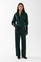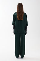 Сатинові штани з м'якої віскози у глибокому зеленому кольорі. Ніжна тканина на дотик створює комфорт та делікатне ковзання по шкірі.У комплекті із сатиновою сорочкою вигляд стає завершеним і може бути як повсякденним, так і святковим.