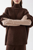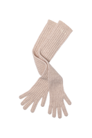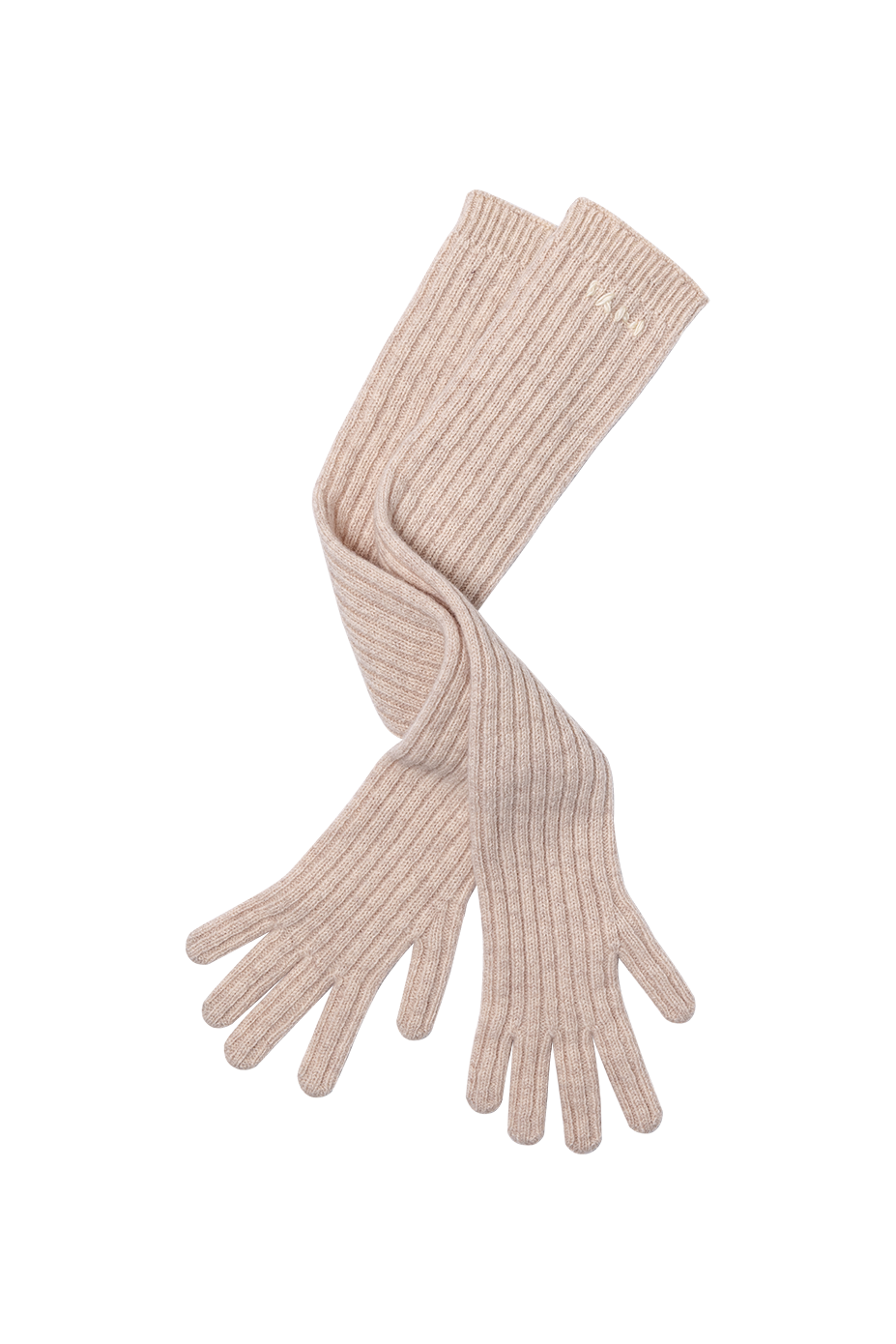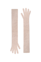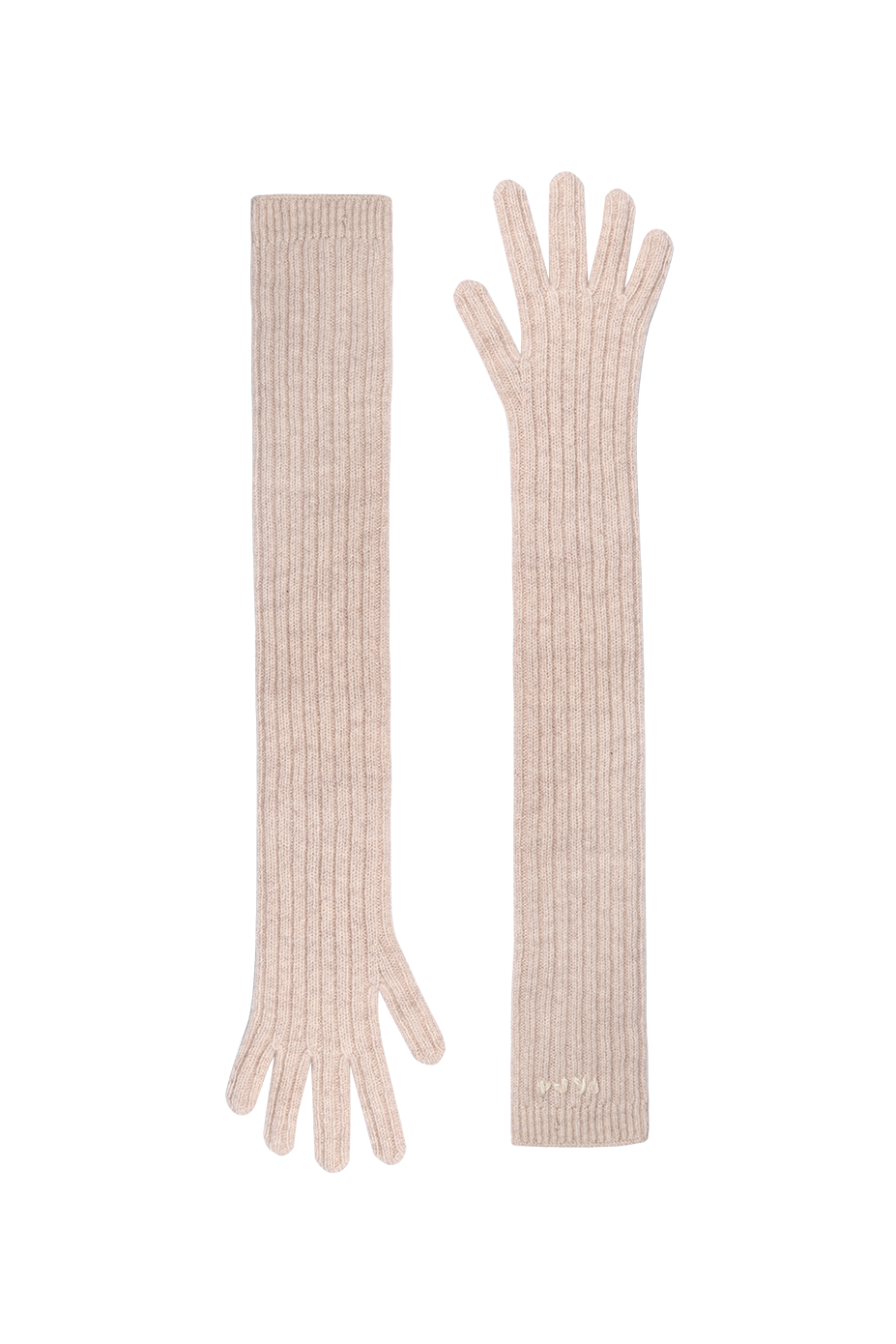 Довгі в'язані рукавиці в бежевому кольорі з ніжної вовни, прикрашені стібком ручної роботи, що робить кожну пару унікальною та особливою.Колір: бежевий меланж.