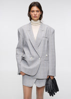 Стильний двобортний жакет оверсайз у класичну клітинку. Для приталеного силуету ми додали дальній ґудзик. Універсальна модель для створення елегантних ділових та повсякденних образів. Виконаний з фактурної тканини з вираженою ворсистістю.