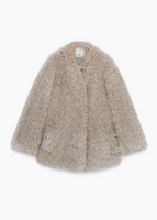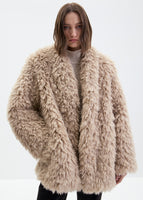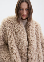 Шуба прямого крою виконана зі штучного хутра. Застібається на гачки.