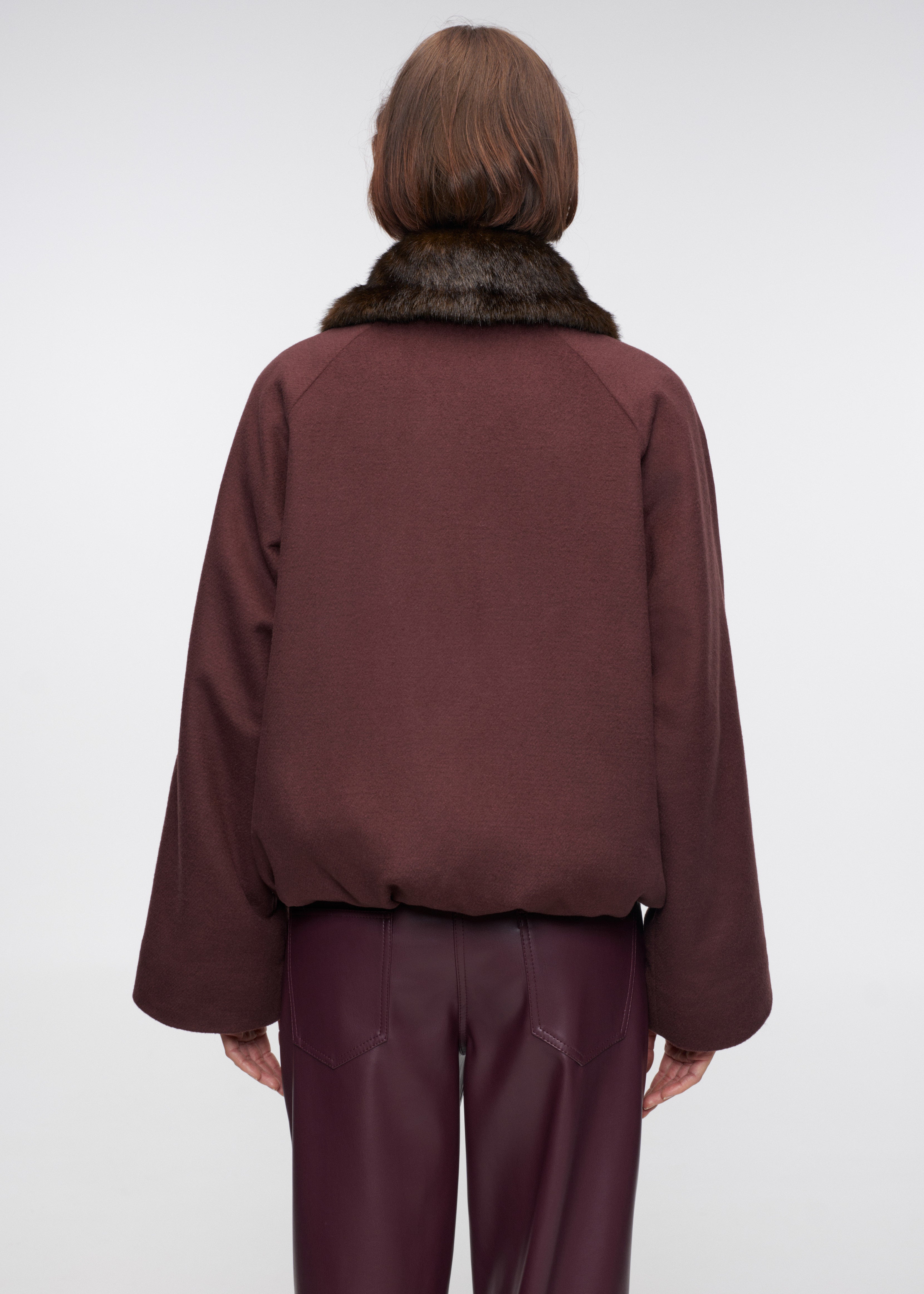 Тепла куртка-пальто оверсайз з хутряним коміром. Утеплена підкладка з віскози захищає від холоду. Знімний комір зі штучного хутра на гудзиках та застібка на блискавку забезпечують функціональність та комфорт. Куртка розрахована на температуру до -5°C.